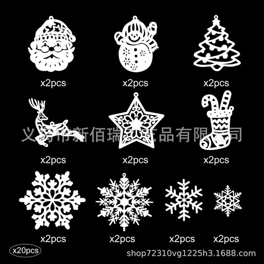 42/20Pcs Christmas Tree Decoration Hanging Ornaments Tree Snowman Reindeer Santa Snowflake Ornaments for New Year Winter Party
