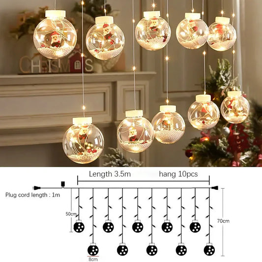 Xmas DIY Christmas Ball Santa LED Curtain Light String Christmas Tree Decoration for Home Party New Year Gifts Navidad Decor
